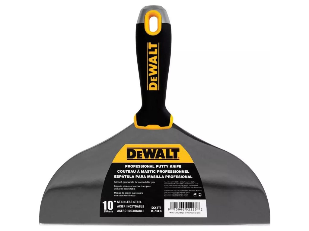 Toto je nástroj pre chlapov, ktorí vedia, že lacné náradie stojí príliš veľa času. Špachtľa DeWALT 10" (254 mm) kombinuje nerezovú čepeľ, nezničiteľnú rukoväť a masívnu kovovú pätku. Má presne takú pružnosť, aby ste tmel roztiahli hladko na prvýkrát a nemuseli sa k spoju zbytočne vracať.