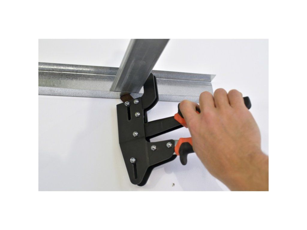 - práca jednou rukou: Vďaka unikátnímu převodovému mechanismu kleští nepotřebujete k prolisování hrubou sílu obou rukou. Jednou rukou držíte profily V vodováze, druhou rukou stisknete kliešte.